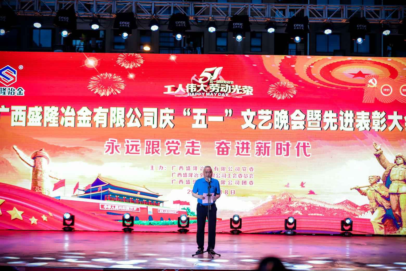 5月8日晚,乐竟网站网页版页面登入-乐竟(中国)盛隆佳园文化广场歌声嘹亮,掌声如潮。由乐竟网站网页版页面登入-乐竟(中国)党委、工会委员会、团委联合主办的“永远跟党走,奋进新时代——庆‘五一’文艺晚会暨先进表彰大会”在这里隆重举行。公司常务副总经理陈亮出席晚会并致辞,副总经理兼安环总监吕华民、副总经理兼技术中心主任刘光穆、总工程师兼规划发展部经理梁新亮、总经理助理兼广西广盛高强耐磨新材料有限公司总经理王文凯、党委常务副书记游元喜、工会主席兼总经理办公室主任刘明奇及各厂部主要领导出席。